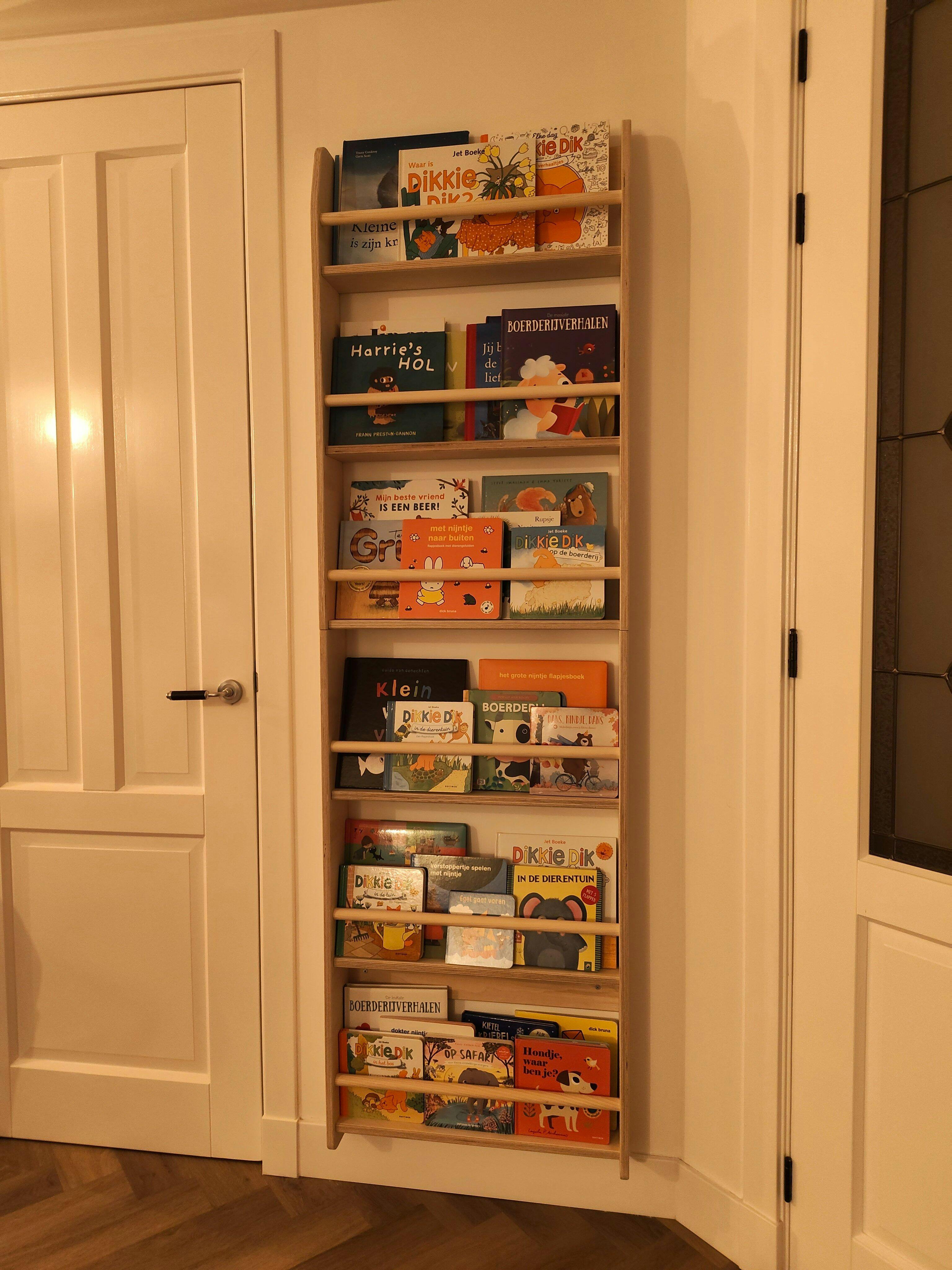 Deze houten Montessori boekenkast is perfect voor op de kinderkamer. De houten boekenplanken zijn helemaal hip en passen in elke kamer, zowel op de speelkamer als op de slaapkamer. De Wenge kleur ook wel walnoot kleur genoemd zie je tegenwoordig overal terug komen. Prachtig he? Je hoeft deze kast niet te bevestigen aan de muur, omdat hij super stevig staat! Stal de leukste boeken uit en zorg ervoor dat de kinderen zelf hun favoriete boeken kunnen pakken. Zo bevorder je de zelfstandigheid. Dit boekenrek is groot en staat erg mooi, door de natuurlijke kleur van het hout. Er zijn 3 planken/treden waarop je jouw boeken kunt zetten. De planken waar de boeken tegenaan staan hellen iets naar achteren.